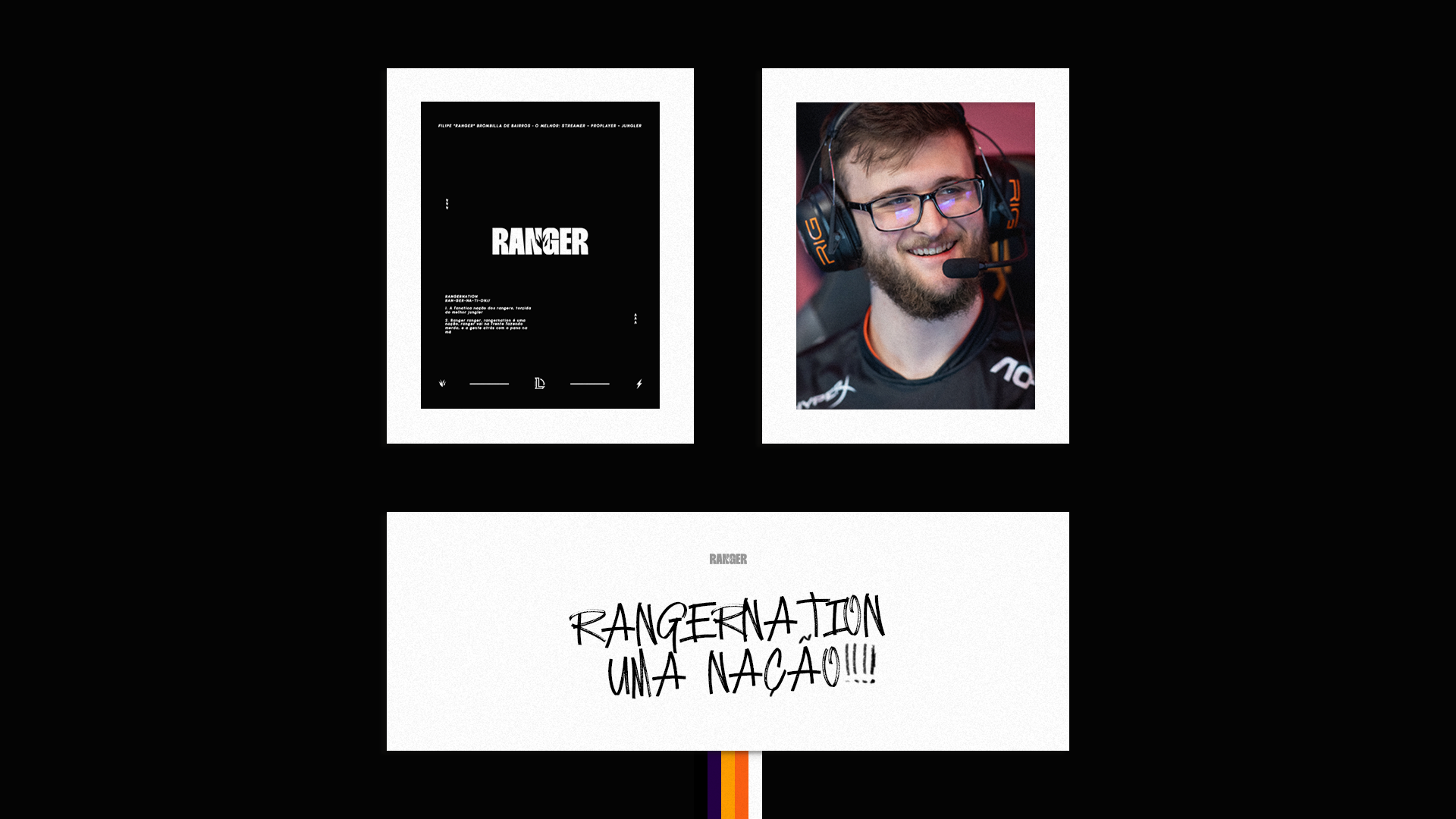 In addition to a reshaping of your stream, it would be ideal for the pro player to have a brand of its own that does not depend on a team or organization to function, with that in mind, a Visual ID was created for Ranger.
